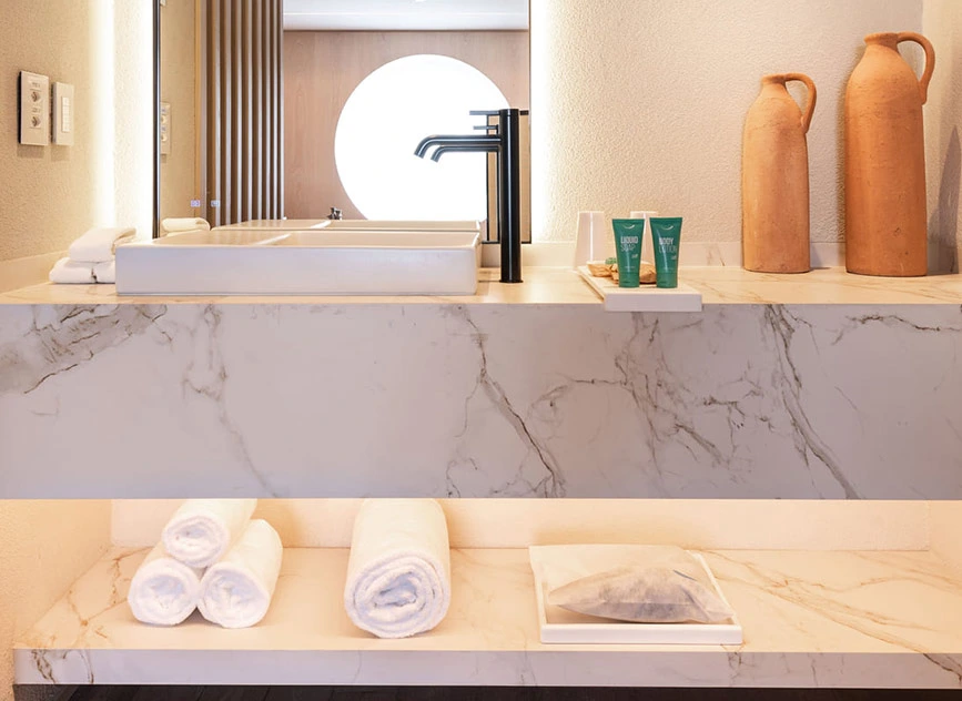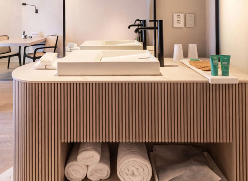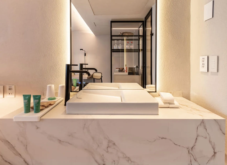 در قلب این بازسازی، سرویسهای بهداشتی هتل قرار دارند که با محصولات منتخب Roca تجهیز شدهاند. استفاده از روشوییهای Ohtake با الهام از فرمهای طبیعی و روشوییهای Horizon با خطوط هندسی مدرن، هماهنگی زیبایی میان سنت و مدرنیته ایجاد کرده است.انتخاب شیرآلات Ona با فناوری Cold Start و طراحی مینیمال، علاوه بر ظرافت بصری، به صرفهجویی در مصرف آب و انرژی کمک میکند. توالتهای Inspira Round با فناوری Rimless و سیستم شستوشوی پیشرفته، ترکیبی از بهداشت و طراحی مدرن را ارائه میدهند. همچنین دوشهای Rainsense با طراحی باریک و تجربه بارانمانند، حس آرامش و لوکس بودن را به اتاقها اضافه کردهاند.این بازسازی نشاندهنده همکاری پایدار میان Roca و معماران برجسته برزیلی است؛ تلفیقی از نوآوری، پایداری و لوکس بودن که استانداردی تازه در صنعت هتلداری ایجاد کرده و جایگاه هتل یونیک را بهعنوان نمادی از معماری و طراحی پایدار در سائوپائولو تثبیت کرده است.